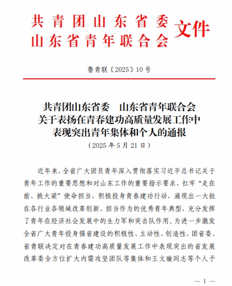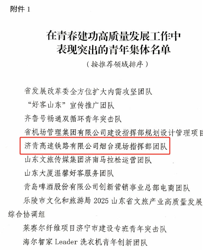 日前,共青團山東省委、山東省青年聯(lián)合會發(fā)布《關(guān)于表揚在青春建功高質(zhì)量發(fā)展工作中表現(xiàn)突出青年集體和個人的通報》,山東鐵投集團濟青高速鐵路有限公司煙臺現(xiàn)場指揮部團隊榮獲表現(xiàn)突出的青年集體,濟鄭高速鐵路有限公司工程管理部副部長楊青原榮獲表現(xiàn)突出的青年個人。